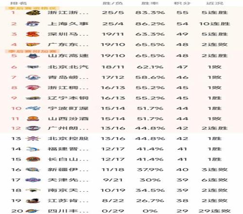 CBA最新积分榜