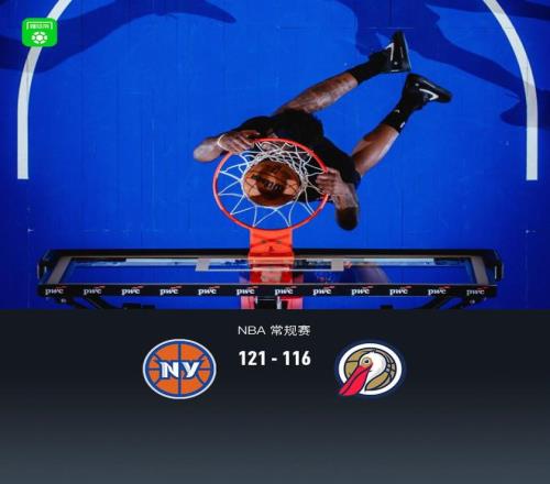 第四节尼克斯布伦森拿下15分,鹈鹕费尔斯拿下11分,最终尼克斯121-116战胜鹈鹕