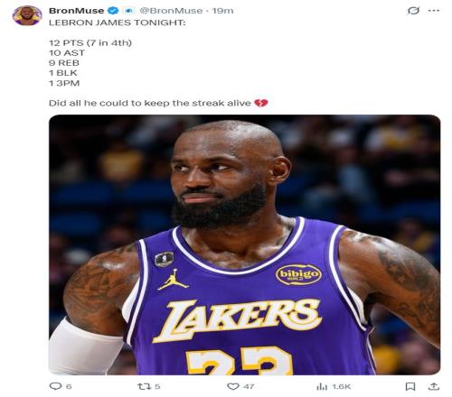 湖人媒体:勒布朗想要延续连胜,他付出一切。