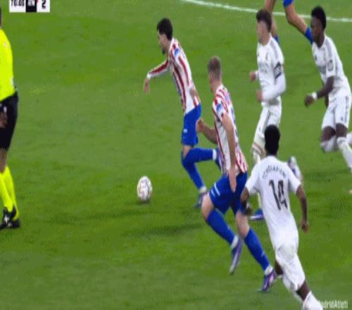 从瓦伦西亚的赛事来到马德里,我们来复盘西甲EA体育联赛的马德里德比。在这次对抗中,皇马球员在中场区域与对手争抢一个二分之一球。主队球员从身后上前放铲,防守动作明显迟缓,直接踢到了对手的小腿和脚踝,且完全没有碰到球的可能。主裁判直接向其出示红牌。裁判认定,这是在可触球范围内使用过度力量、踢倒无球球员的行为。